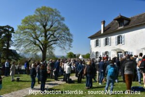 6. April 2025 – Gedenken, Eröffnung und Zusammenkunft Am Sonntag, den 6. April 2025, fand die 81. Gedenkfeier der Razzia in Izieu statt. Zahlreiche Menschen kamen, um den 44 Kindern und 7 Erziehern der Kolonie zu gedenken; die am 6. April 1944 verhaftet und deportiert wurden. In diesem Jahr wurde die Zeremonie vom Jugendgemeinderat und dem Kindergemeinderat von Les Avenières Veyrins-Thuellin (38) begleitet. Vier ehemalige deutsche ASF-Freiwillige, Leo Volkhardt (2017-2018), Jakob Wagner (2019-2020), Johanna Kießler (2023-2024) und Ben Schneiders (2024_2025), die jeweils ein Jahr im Dienste der Erinnerung im Maison d’Izieu verbrecht haben, waren ebenfalls anwesend, um von ihrem Aufenthalt in Izieu zu berichten und gemeinsam mit Jugendlichen des Vereins Jeunesse juive de Lyon die Namen der Kinder der Kolonie und der 7 Erwachsenen vorzulesen, die am 6. Arpil 1944 deportiert wurden. Thierry Philip, Präsident des Vereins, Mathias Ott, interministerieller Beauftragter für die Bekämpfung von Rassismus, Antisemitismus und Hass gegen LGBT (DILCRAH), und Yannick Scalzotto, Unterpräfekt von Belley, erinnerten daran, wie sichtig Bildung und Weitergabe sind, damit das Vergessen niemals Einzug hält. 01 / 07 In Ihren sozialen Netzwerken teilen
