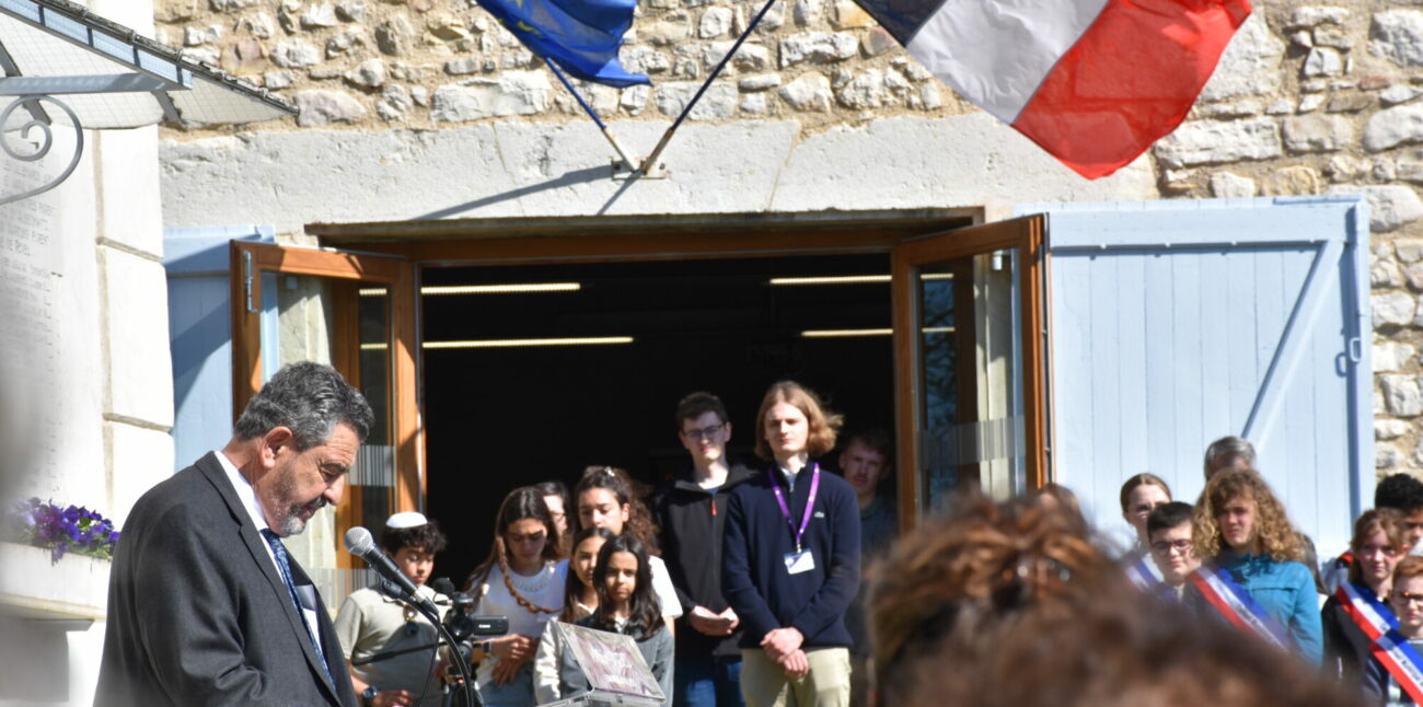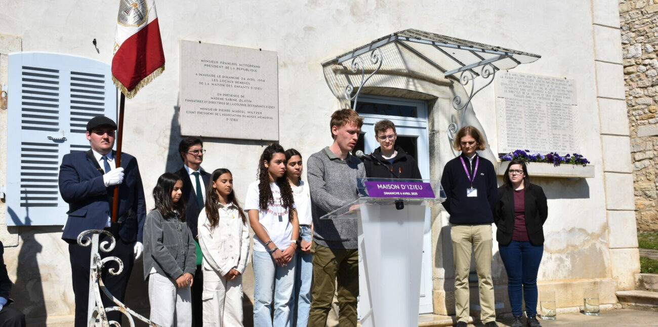 6th April 2025: Commemoration, inauguration, general assembly Commémoration 81 years after the roundup of 6th April 1944 Sunday, 6 April marked the 81st anniversary of the Izieu roundup. Many people came to pay tribute to the 44 children and 7 teachers from the Colony, who were arrested and deported on 6 April 1944. This year, the youth council and children’s council of Les Avenières Veyrins-Thuellin (38) organized the ceremony. Four former German ASF volunteers, Leo Volkhardt (2017-2018), Jakob Wagner (2019-2020), Johanna Kießler (2023-2024) and Ben Schneiders (2024-2025), who each spent a year serving the memory at the Maison d’Izieu, were also present to share their experiences in Izieu. They read the names of the children from the Colony and the seven adults rounded up on 6 April 1944, together with young people from the Jewish Youth Association of Lyon Thierry Philip, president of the association, Mathias Ott, interministerial delegate for the fight against racism, anti-Semitism and anti-LGBT hatred (DILCRAH), and Yannick Scalzotto, sub-prefect of Belley, reiterated the importance of education and transmission so that we never forget. 01 / 12