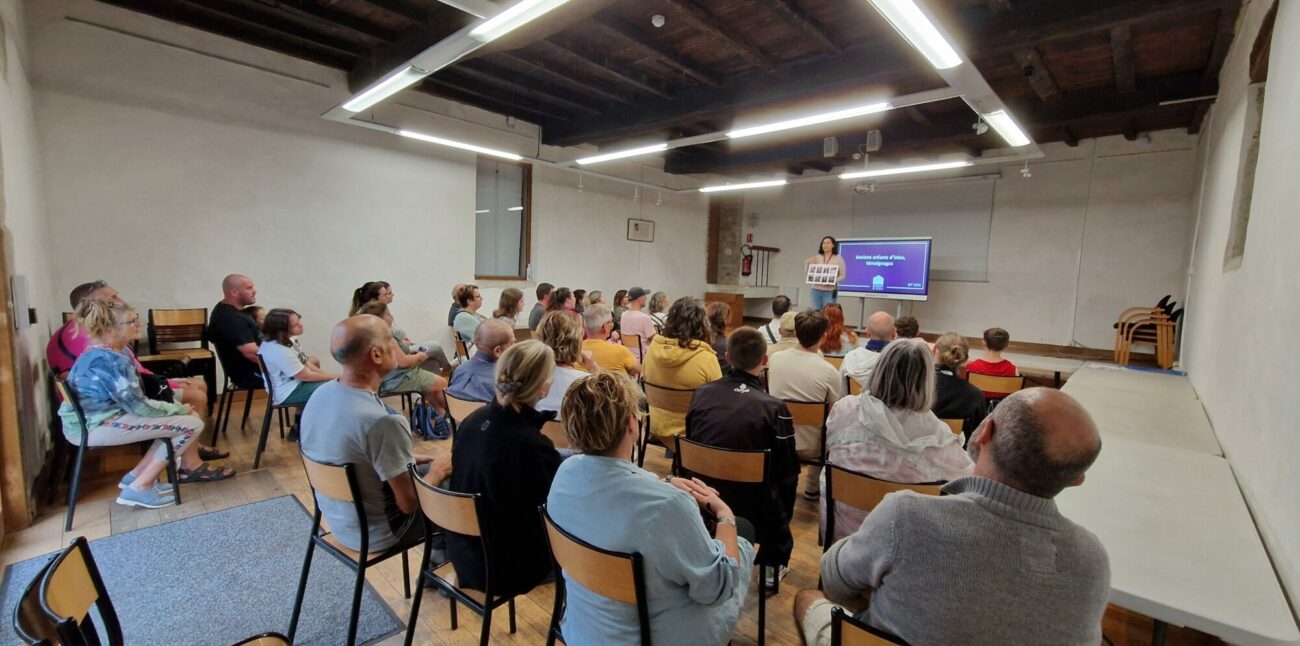 Journées européennes du patrimoine 2025 Cette année, lors des journées européennes du patrimoine, la Maison d’Izieu a reçu près de 600 visiteurs tout au long de la journée du dimanche 21 septembre ! La nouvelle formule spécialement conçue pour cet événement avait ravie tous les visiteurs l’année passée, avec la possibilité de visiter la maison en libre accès et gratuitement et de découvrir le musée à travers des visites thématiques guidées par l’équipe médiation. Avec quelques changements dans les thématiques, les focus étaient fortement plébiscités par les visiteurs, remplissant les salles à chaque créneau : – Sabine Zlatin, l’artiste : les médiateurs s’appuyaient sur l’écran interactif dédié à cette femme d’exception ainsi que sur l’un de ses tableaux, sorti pour l’occasion. – L’environnement de la Colonie, balade jusqu’au village d’Izieu et découverte du caveau Martin-Barbaz : une visite aux alentours du musée pour explorer le village et approfondir sa compréhension de l’environnement dans lequel vivait la Colonie avec cette année, une visite du caveau de Denis Martin-Barbaz à la fin de la visite. – Juger K.Barbie : projection d’extraits du procès de Klaus Barbie commenté par les médiateurs afin de saisir le crime contre l’humanité. – Nuremberg, 80 ans après : les visiteurs ont pu être plongés dans le procès de Nuremberg, 80 ans après son déroulement accompagné d’un médiateur et du nouvel écran interactif contenant des photos du procès et des explications. – Anciens enfants d’Izieu, témoignages : en s’appuyant sur les témoignages d’anciens enfants d’Izieu, les visiteurs pouvaient découvrir le vécu de certains de ces enfants passés par la colonie. – Le repaire des jeunes lecteurs et dessinateurs : un espace enfants était prévu avec des livres, des BD, des coloriages et des activités encadrées par des membres de l’équipe tandis que les parents explorent le musée et les visites guidées de leur côté. Cette nouvelle édition a rencontré un grand succès avec une augmentation du nombre de visiteurs par rapport à l’année précédente ! Merci à tous les participants ! 01 / 10 Partagez sur vos réseaux :